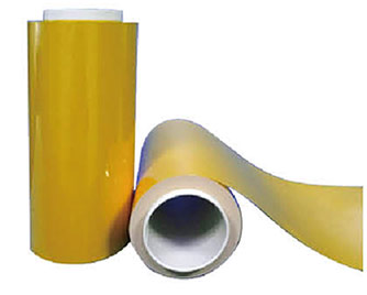 黃色、黑色無鹵覆蓋膜(CVL)是由聚酰亞胺薄膜涂覆高性能熱固性環(huán)氧樹脂接著劑,以離型紙做隔離層,經(jīng)高溫固化后形成的絕緣耐熱膠膜。材料廣泛應(yīng)用于FPC制造,以作線路保護(hù)及絕緣層。